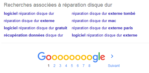 - Pensez à utiliser des combinaisons de mots-clés. « Trouver réparateur informatique récupération disques durs marseille » est un mot-clé qui combine plusieurs mots-clés : « trouver réparateur informatique » et « récupération disques durs ». Les combinaisons de mots-clés permettent de se positionner souvent très bien sur la combinaison, mais aussi avec un peu de chances sur les mots-clés utilisés dans la combinaison (sur « récupération disques durs marseille » par exemple).