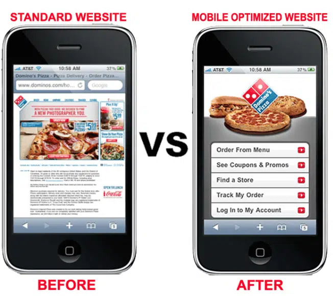 Comme son nom l’indique, un site web mobile-friendly veut simplement désigner un site web qui s’affiche bien non seulement sur les ordinateurs, mais aussi sur les appareils mobiles, avec leurs écrans plus petits. Sur un site web mobile-friendly, le texte est facile à lire, les liens et le menu sont facilement cliquables…Voici ce qu’est un site web mobile-friendly (à droite) et son contraire :