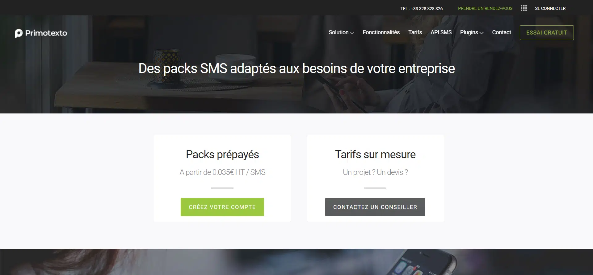 PrimoTexto propose des offres prépayées, avec une tarification variable selon le volume et le canal utilisé.