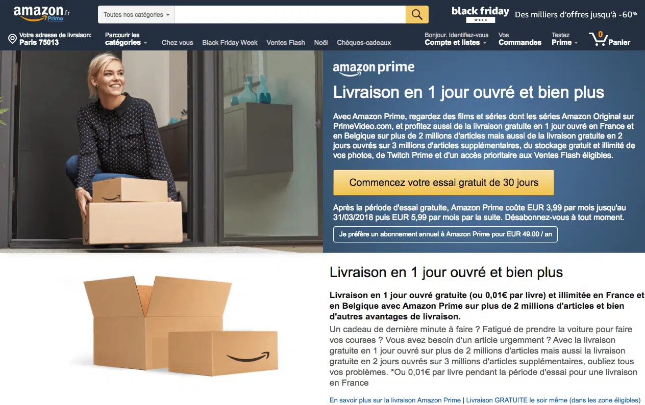 Un très bon exemple de ce genre de programme payant est Amazon Prime, qui offre à ses membres des avantages exclusifs, en particulier sur la livraison (+ réduction de prix, accès aux ventes flash, etc.).