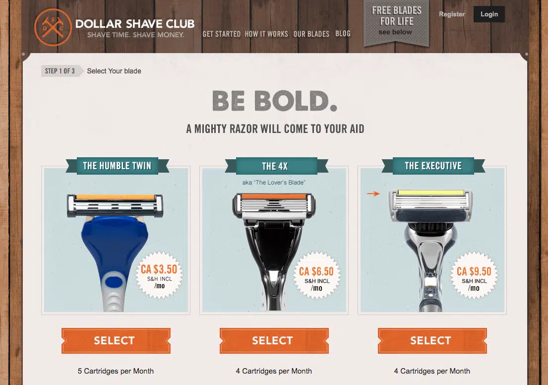 La marque Dollar Shave Club propose quant à elle à ses clients des programmes payants permettant de recevoir tous les mois des produits de rasage. Lorsqu’un site ecommerce propose des produits que les clients doivent renouveler souvent (ici, les lames de rasoire), ce type de programme est très pertinent.