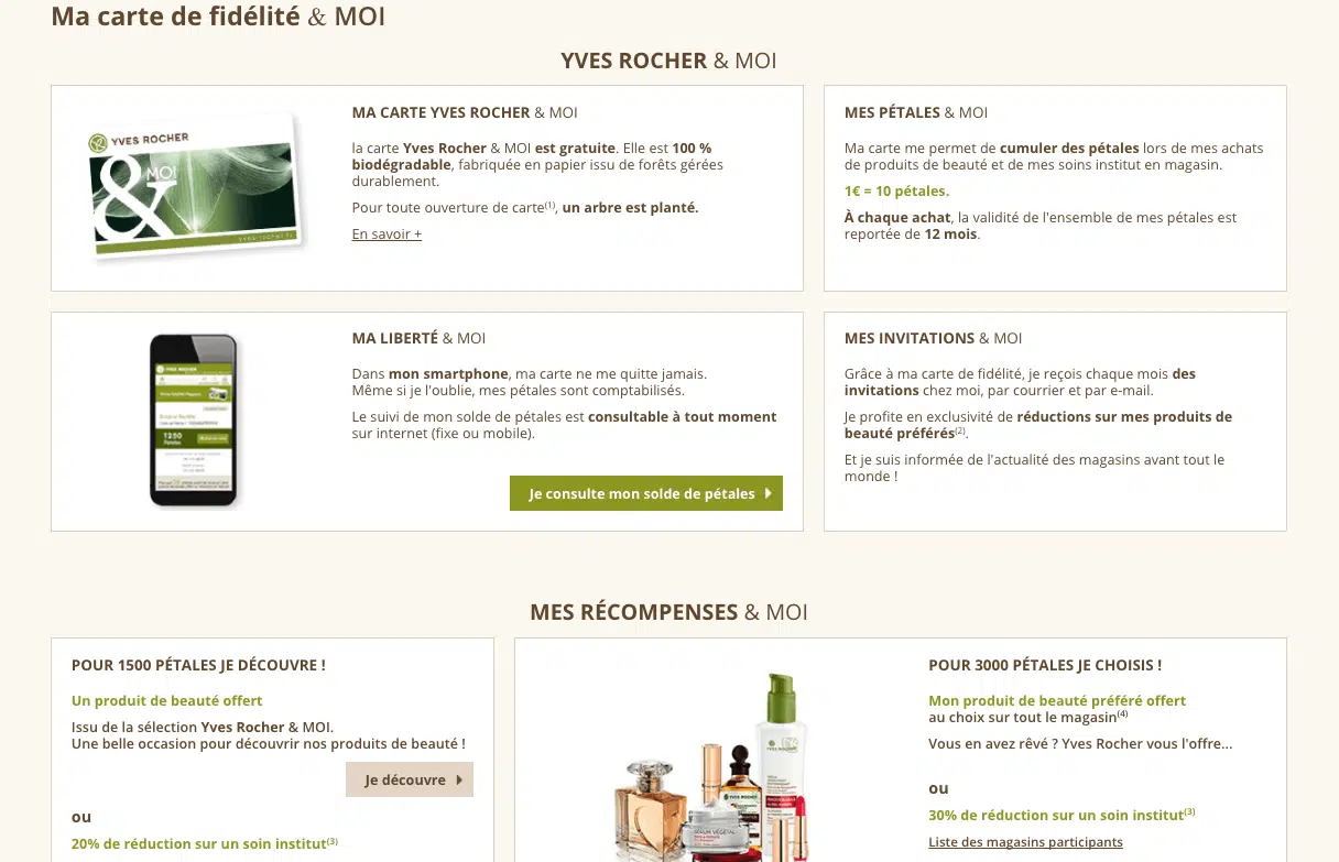 Voici l’exemple de Yves Rocher (qui appelle les points des « pétales ») :
