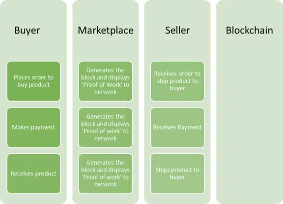 En raison de la sécurité qu’offrent le réseau et la cryptographie, la technologie blockchain fournit un système sécurisé grâce auquel les particuliers et les entreprises peuvent directement interagir entre eux sans avoir besoin d’un intermédiaire. Les seuls frais mineurs qui seront payés sont pour le réseau derrière la blockchain pour la validation des transactions et la sécurisation du réseau. L’acheteur et le vendeur ne paient aucuns frais à une compagnie de marché parce que, techniquement, il n’y en a pas. Les platesformes à travers lesquelles le commerce électronique sera réalisé sont des applications blockchain. Étant donné que les blockchains sont décentralisées, il n’y a pas de partie centrale, ni de société, qui définit les règles et décide de la manière dont les utilisateurs traiteront les uns avec les autres. Les utilisateurs, donc les particuliers et les entreprises, déterminent le développement et le fonctionnement de la plateforme. Les développeurs créent la blockchain et la mettent constamment à jour, mais ils ne peuvent la mettre à niveau qu’avec le consensus de la communauté.