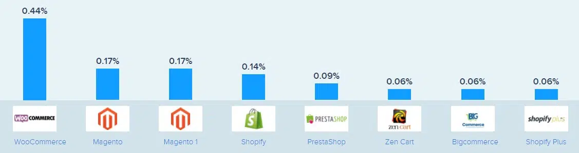 - WooCommerce (WordPress) reste énorme en volume grâce à sa base installée.