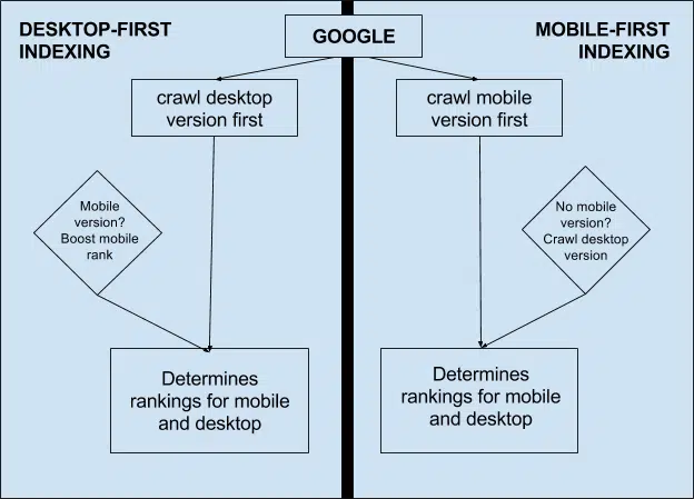 Le mobile est la voie à suivre lors du développement de votre site web. Le nombre d’utilisateurs sur mobiles ne cessant d’augmenter, Google recommande à tous de créer des sites web réactifs et de grande qualité sur chaque appareil. Il est extrêmement important de créer un contenu cohérent sur toutes les plateformes, du mobile au bureau. Lors de la création de sites web, vous devez comprendre que Google analyse à la fois la version de bureau et la version mobile. Lorsque Google indique qu’il recommande l’indexation mobile en premier, il ne dit pas qu’il n’explorera pas votre version bureau. Lorsque Google découvre que vous avez un site web convivial conçu pour les mobiles (recommandé), il préfère afficher votre site web plus haut que les sites web qui ne le sont pas.