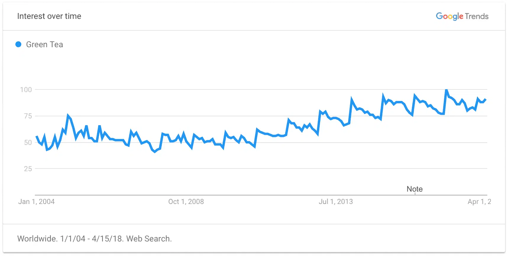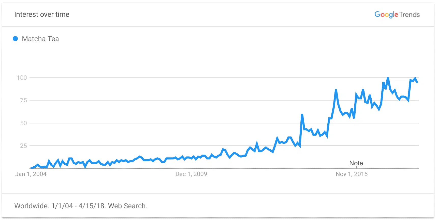 Non seulement le thé vert n’a cessé de grimper comme une tendance depuis le début des années 2000, mais il a gagné en popularité pour une bonne raison. Le thé vert est généralement une option plus saine que les autres boissons de sa catégorie, il contient moins de caféine que les autres boissons et, surtout, il y a énormément d’utilisations et de déclinaisons possible du produit que cela permet aux commerçants de proposer de nouvelles idées de produit.
