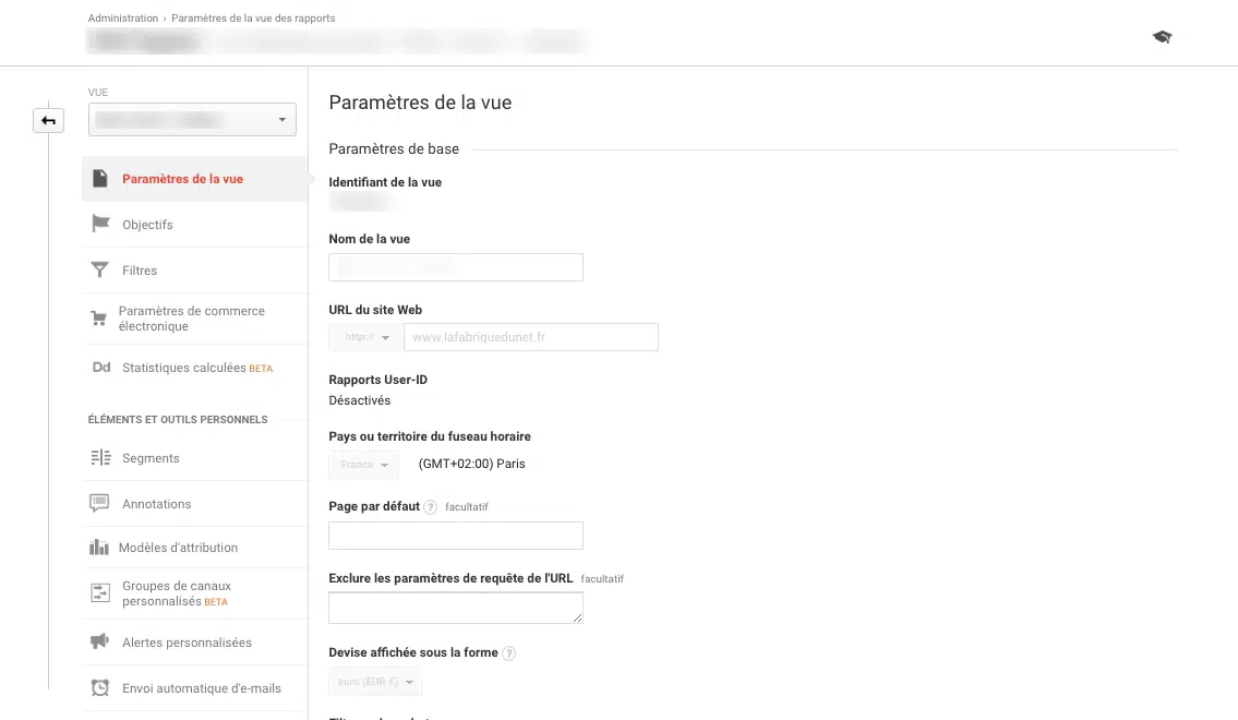 - Filtrage des robots : la case ne doit être cochée que pour les vues « Reporting » et « Test ». Les robots et le spam traffic gonflent artificiellement les statistiques et faussent les données.