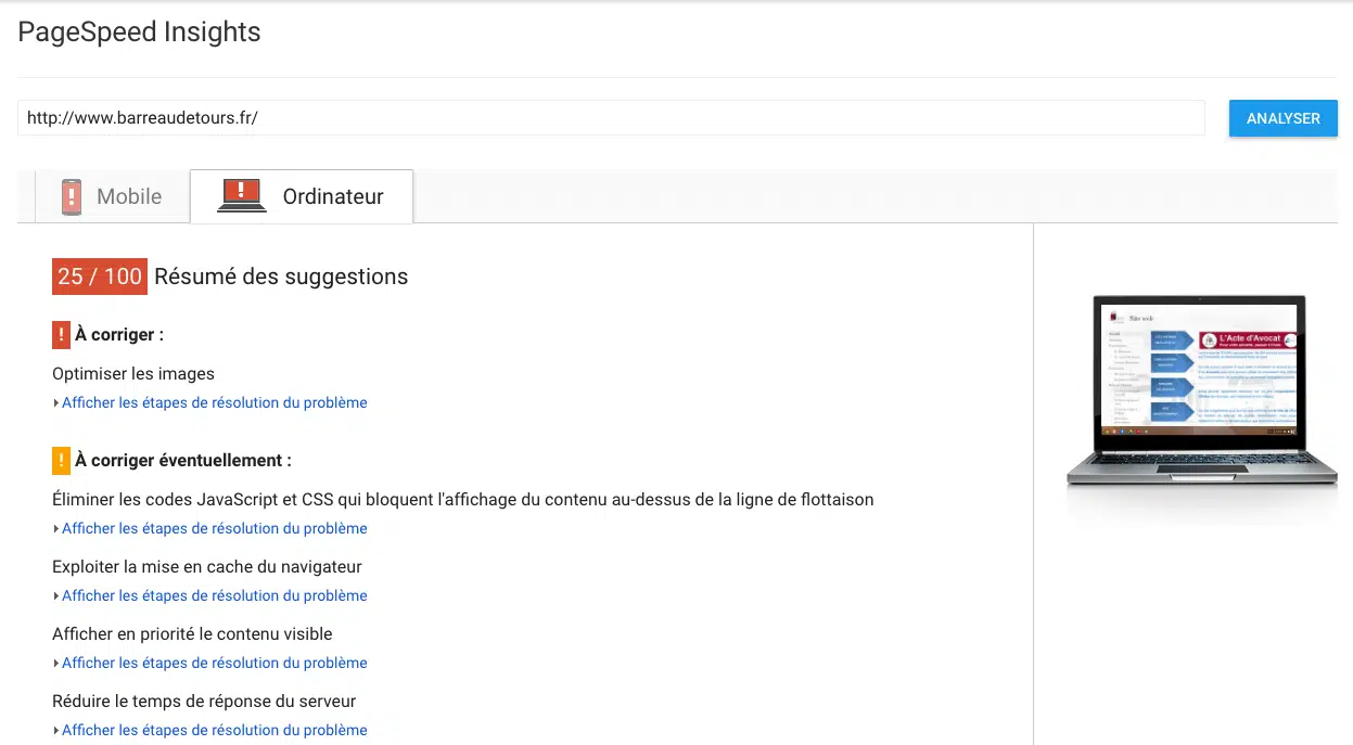 La vitesse de chargement de votre site est un signal fort pris en compte dans l’algorithme de référencement de Google. Un site dont les pages se chargent trop lentement a pour effet de ralentir la lecture et l’indexation du site – ce qui impacte son référencement. C’est d’ailleurs un facteur de référencement de plus en plus important. Vous devez donc être vigilant et travailler pour optimiser la vitesse de chargement. Au-delà de l’aspect purement SEO, la vitesse de chargement a aussi un impact important sur l’expérience utilisateur. Un temps de chargement trop long se traduira par une augmentation du taux de rebond. Dans l’idéal, le temps de chargement doit être inférieur à deux secondes. Vous pouvez utiliser l’outil GTMetrix pour connaître la vitesse de votre site et PageSpeed Insights pour identifier les éléments à optimiser.