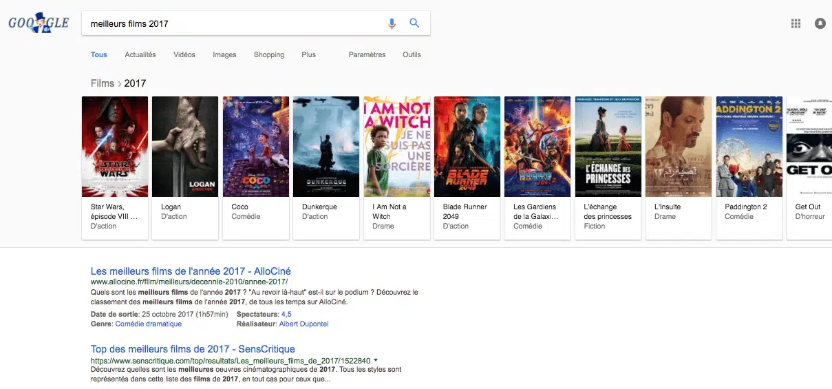 Voici à quoi ressemble un carousel dans les SERP Google :