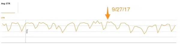 La courbe de l’évolution du CTR donne une explication de la baisse de trafic. On observe que le taux de clic commence à baisser à partir de fin septembre.