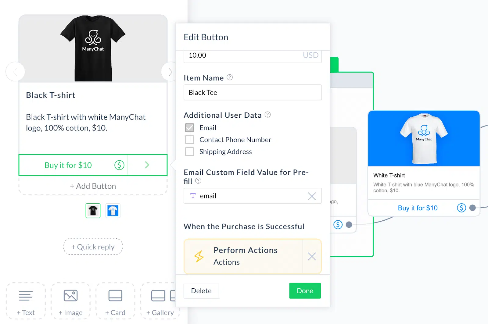 Il existe aujourd’hui plusieurs méthodes, plusieurs outils pour créer des campagnes de Social Commerce. Nous allons vous en présenter une, vous présenter un outil de référence : ManyChat. Si Facebook ou Instagram sont vos principaux canaux d’acquisition, ManyChat vous permettra de rapidement transformer vos posts et publicités en achats. À noter que des solutions comme Shopify (avec ses intégrations natives sur Instagram, Facebook, TikTok et Pinterest) ou Ecwid sont de plus en plus adoptées pour gérer le social commerce de façon centralisée.