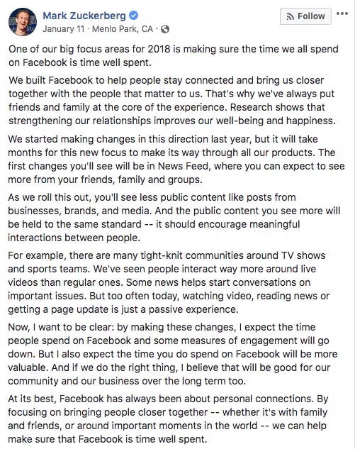 Pour les entreprises, cela peut sembler une mauvaise nouvelle. Mais ce changement signifie aussi et surtout que ceux qui réussissent à générer le plus d’engagement seront aussi ceux qui auront le meilleur reach. C’est donc une opportunité, une opportunité à saisir. Les marketers malins l’ont déjà compris et ont adapté leur stratégie marketing en conséquence, en publiant des posts moins promotionnels, moins commerciaux, conçus moins pour pousser des produits que pour susciter des interactions, des réactions, des échanges.