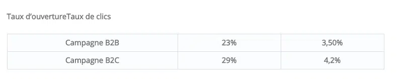 Tableau campagnes B2B / campagnes B2C tiré d’une étude réalisé en 2014 par Mail Metrics :