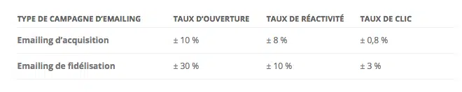 - Le taux d’ouverture est trois fois plus important pour les emails de fidélisation et s’établit à 30%. Les emails de fidélisation sont beaucoup plus ouverts que les emails d’acquisition.