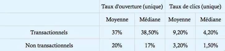 Si l’on s’intéresse uniquement aux moyennes, on constate que les emails transactionnels :