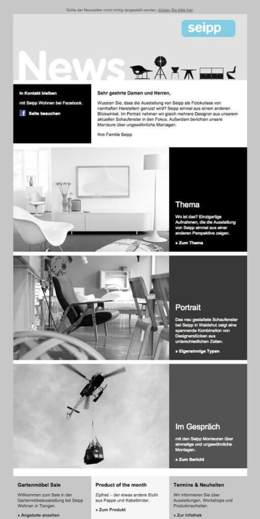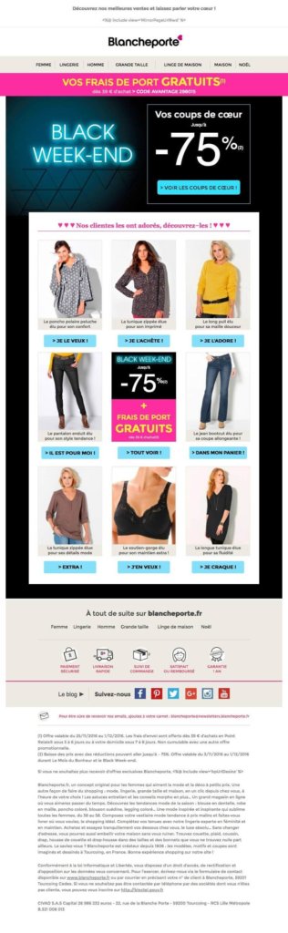Même si l’une des tendances actuelles est d’utiliser des couleurs vives, le monochrome a fait son grand retour récemment. Mais il y a des règles à respecter pour que cela fonctionne. Il faut davantage privilégier le noir et blanc qui donne du contraste et permet de faire ressortir certains éléments de votre e-mailing.