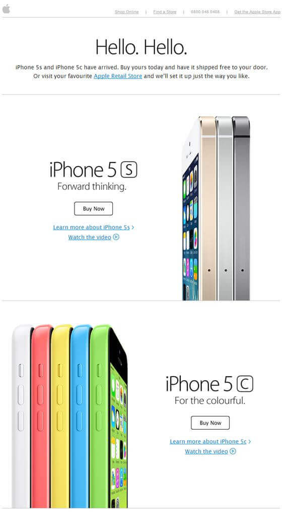 Le smartphone était l’appareil le plus utilisé pour accéder aux e-mails en 2018. Avec moins de place et un laps d’attention plus court que sur desktop, il faut chercher à aller droit au but. C’est pourquoi il faut miser sur une construction d’e-mail simple et épuré qui met l’accent sur les boutons call-to-action. Il ne faut pas chercher à faire un catalogue de vos produits ou de vos contenus.