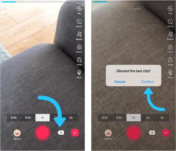 La fonction d’édition vidéo de TikTok vous permet d’enregistrer en « segments ». Cela signifie qu’en maintenant le bouton d’enregistrement enfoncé et en le relâchant, vous pouvez reprendre là où vous vous étiez arrêté et continuer l’enregistrement.