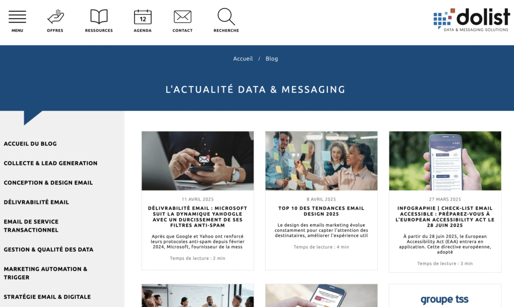 Dolist édite une plateforme Email française reconnue pour sa fiabilité et l’expertise en délivrabilité de son équipe. Les conférences de Dolist, réalisées généralement par sont charismatique fondateur Jean Paul Lieux, sont un classique de tout salon Emarketing ou Ecommerce. Le blog de Dolist s’adresse à des annonceurs de taille moyenne, B2B ou B2C, qui cherchent à connaitre et à appliquer les meilleures pratiques Email.