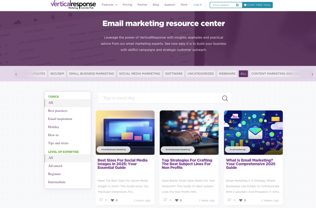 Vertical response est un blog de marketing avec une orientation email marketing marqué. On y trouve les meilleurs moyens de gérer au mieux sa campagne mail avec des articles centrés sur le sujet. Les différentes astuces sur la forme du mail peuvent être extrêmement utiles pour réduire le taux de rebond.
