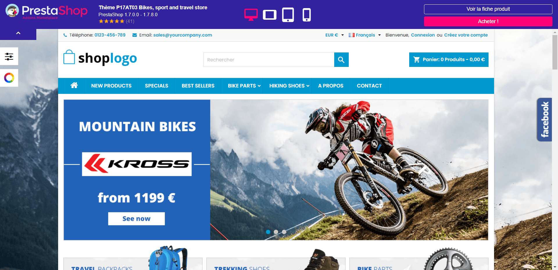 Bikes, sport and travels store, un thème pour vendre des articles de sport
