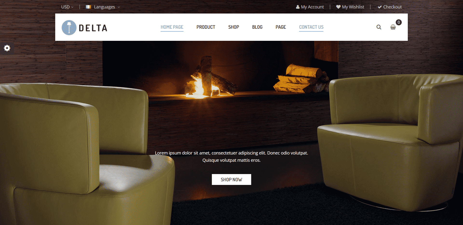 Le thème PrestaShop Delta a été imaginé spécialement pour les ecommerces de meubles et de décoration. Il permet de diffuser un diaporama d’images et de texte de façon fluide sur la page d’accueil. En déroulant vers le bas de page vous pouvez présenter vos meilleurs produits et vos derniers arrivages pour accrocher vos clients potentiels.