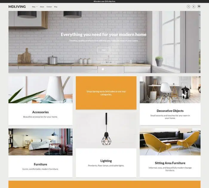 Furnitto est un autre thème Shopify avec un design responsive. Le thème fournit tout l’arsenal nécessaire pour le commerce électronique, de sorte que vous pouvez créer votre propre magasin en ligne. Un thème unique et spécialement conçu pour présenter les produits actuellement en vente. Le thème a des fonctions adaptatives qui assurent l’affichage du site sur tous les appareils. Il est compatible avec tous les navigateurs. Mise en page flexible du thème; widgets personnalisés; support pour les fonctionnalités de commerce électronique; mises en page personnalisées; polices web modernes intégrées (Google Fonts ou alternatives locales pour la performance RGPD) … voici un petit aperçu des fonctionnalités disponibles.