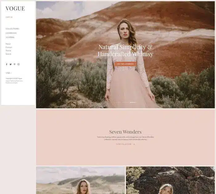 Vogue est un thème élégant et contemporain parfait pour présenter des produits haut de gamme. Son lookbook unique en son genre font briller vos produits.