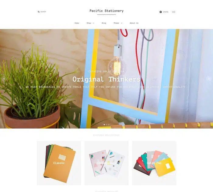 Pacific est un thème Shopify conçu pour les grands inventaires. Totalement modulable, ses pages produits sont facilement ré-organisables, son système de méga-menu est personnalisable et entièrement intégré aux réseaux sociaux.