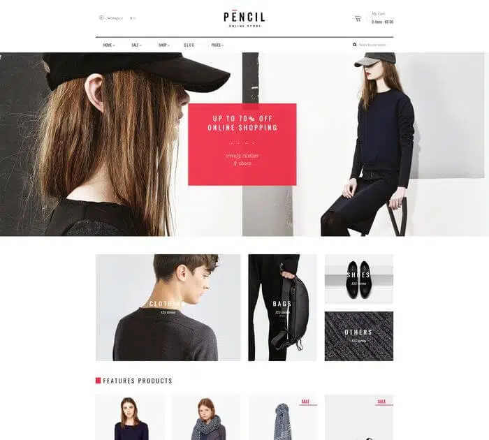Pencil est un thème responsive spécialement conçu pour la mode avec un design créatif et des fonctionnalités avancées. Le thème comprend des designs illimités pour vous aider à présenter votre contenu et à montrer les produits de la manière la plus intelligente possible. Le thème prend en charge Megamenu et Vertical Megamenu pour construire un système de menu flexible. Il intègre de nombreux widgets et modules pour vous faire gagner du sur la création du contenu. Le thème est super facile à personnaliser avec un panneau de contrôle de thème intuitif, des outils utiles : éditeur de thème en direct, réglage de thème, etc.