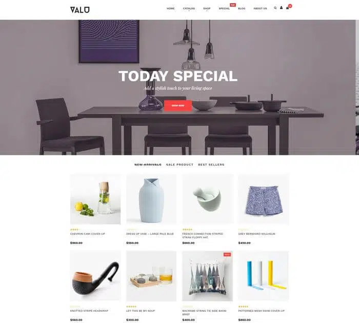 Valu est un thème Shopify avec un design élégant. Il est parfait pour un magasin de meubles, mode, chaussures, cuisine, accessoires, numérique, sport … Il est conçu avec un style moderne et de nouvelles technologies web : Utilisation des dernières normes web (HTML5, CSS3) et d’icônes SVG modernes pour une meilleure performance et accessibilité. Ce thème est conçu et testé pour être 100% responsive, ce qui donne à votre boutique un aspect cohérent quel que soit l’appareil utilisé par les clients. Ce thème Shopify a quelques fonctionnalités de base pour votre boutique en ligne tels que Megamenu, Détails du produit, Liste des produits, Aperçu rapide, Ajouter au panier, Grille et liste, Slider d’images …