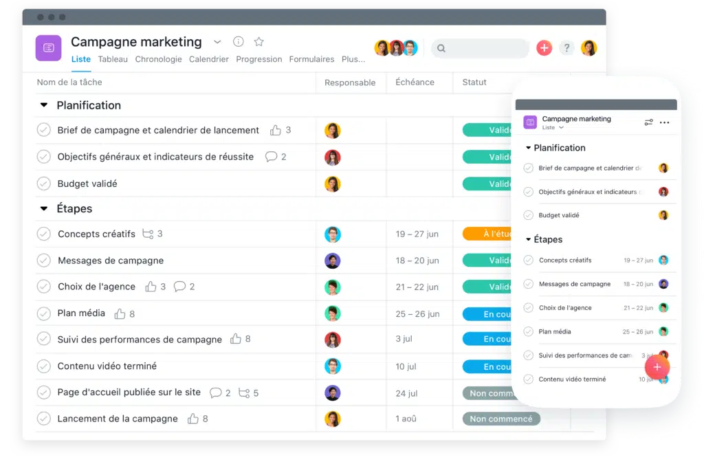 Gérer un projet avec plusieurs parties prenantes peut vite devenir… catastrophique. Avec Asana, vous gérez le projet, les différentes personnes impliquées et surtout les deadlines. Rapidement vous obtenez une vue d’ensemble afin de suivre votre projet. Asana propose plusieurs types de vues et s’adaptent ainsi à vos préférences. Découvrez notre avis complet sur Asana.