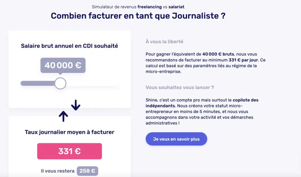 #5 Le simulateur de revenus freelance vs salarié de Shine