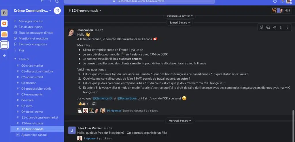 Slack dispose d’une version gratuite. En tant que freelance, vous êtes souvent invités dans des espaces payants, mais vous n’avez rien à payer.