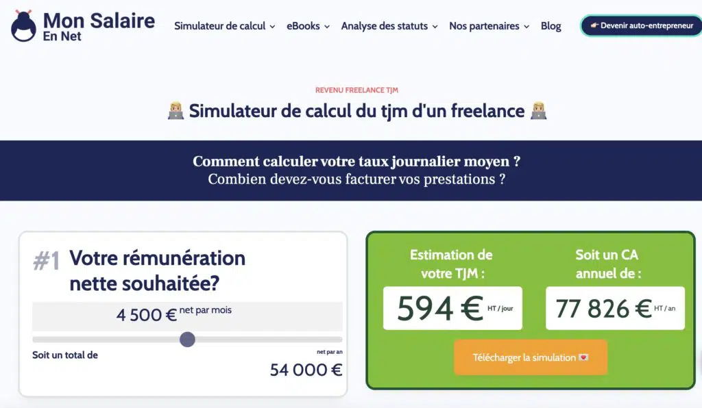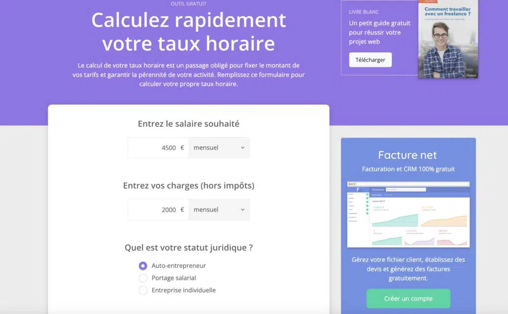 Il existe aussi des outils qui vous permettent de déterminer le taux horaire ou TJM (taux journalier) à pratiquer pour atteindre les revenus que vous souhaitez. Nous en avons sélectionné 3 pour vous.