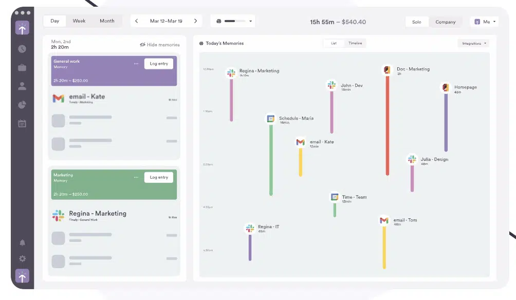 Et si vous n’aviez pas à vous préoccuper du temps passé ? Avec Timely pas besoin d’activer de chrono. Cet outil suit automatiquement le temps passé sur le web et votre ordinateur. Vos activités sont facilement regroupées en fonction de vos actions, mais pas seulement ! En suivant votre travail quotidien, vous facturez le temps réellement passé en toute transparence.