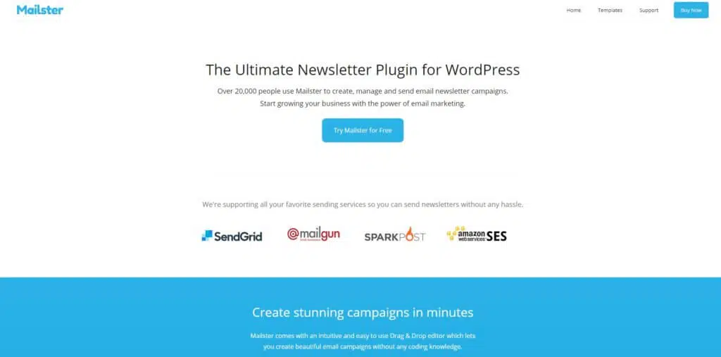 Ce plugin WordPress premium, conçu pour créer des newsletter, est quasiment parfait. Que vous soyez un développeur essayant d’obtenir rapidement votre propre newsletter ou que vous souhaitiez donner à vos clients un outil assez facile à utiliser par eux-mêmes, cette solution est idéale. Mailster vise à être une alternative complète aux services comme MailChimp ou Sendinblue. Plutôt que d’avoir besoin d’utiliser des tableaux de bord séparés (et de payer des frais mensuels), vous pouvez tout faire à partir de votre tableau de bord WordPress. Pour créer vos e-mails, Mailster vous propose un éditeur d’e-mails par glisser-déposer, ainsi que de nombreux templates prédéfinis. Vous pouvez également insérer des informations directement depuis votre site WordPress, comme tous les détails de vos derniers articles de blog. Enfin, vous pouvez envoyer vos e-mails manuellement ou vous pouvez configurer des réponses automatiques ou d’autres règles d’automatisation des e-mails