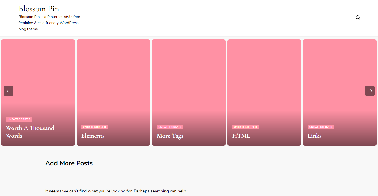 Blossom Pin est un thème WordPress gratuit très surprenant. Il s’inspire totalement des épingles Pinterest dans sa conception et son design. Ainsi, de la même façon que sur Pinterest, vous pourrez créer des épingles qui mèneront vers vos articles.