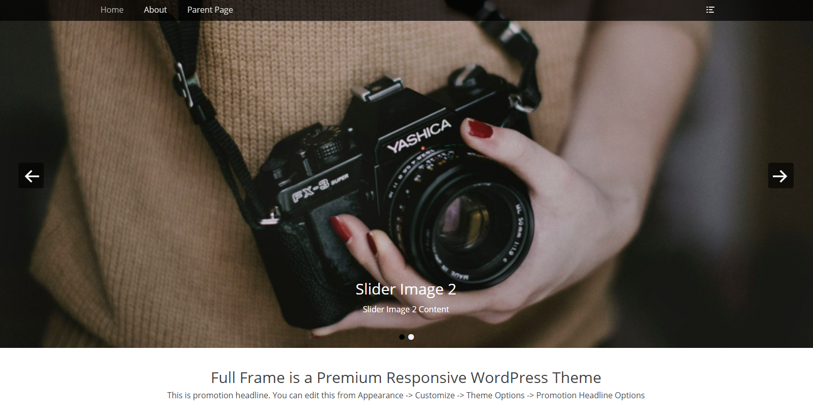 Full Frame est un thème WordPress gratuit tourné vers la photographie. Sa construction simple et épurée vous permet de mettre en lumière vos photographies partout sur votre site web. Il est adapté à tous les supports (mobile, ordinateur et tablette).