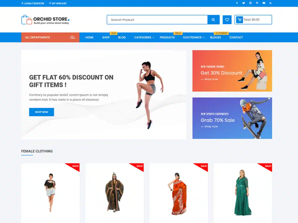Orchid store est un thème WordPress gratuit, totalement conçu pour le e-commerce. Il a déjà été adopté par plus de 9 000 personnes.