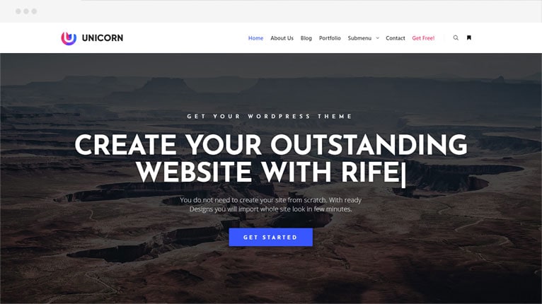 Rife free est un excellent thème WordPress gratuit pour créer un portfolio en ligne ou un site de photographie. Ce thème est polyvalent et peut même être converti en site e-commerce. Mais sa force réside dans la personnalisation et la mise en avant des images.