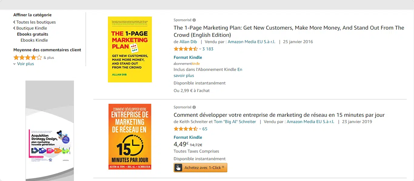 • La recherche affinée permet de cibler des livres au sein du secteur marketing.