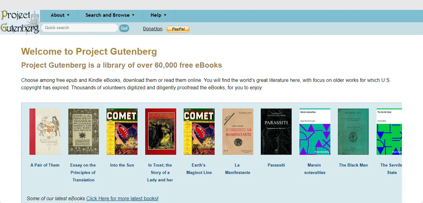 Lancé en 1971, le Projet Gutenberg est historiquement l’un des tout premiers, sinon le premier site de téléchargement de livres numériques. Plus de 60 000 titres sont disponibles en accès libre, sous plusieurs formats : ePub, Kindle, HTML, etc. Les grands auteurs, comme Balzac ou Hugo, sont au rendez-vous, mais bien d’autres genres que le roman sont présents. Pour les lecteurs gourmands, la possibilité est donnée d’exporter le fichier ebook vers les plateformes de stockage en ligne (Dropbox, Google Drive, OneDrive), même si cette fonctionnalité tend à être moins mise en avant au profit de la synchronisation directe avec les applications de lecture.