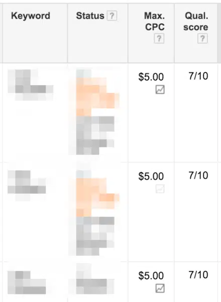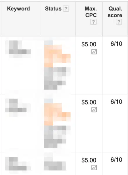 Les quality score sont en réalité EXTRÊMEMENT surestimés. Beaucoup de gens qui ne savent pas qu’ils peuvent améliorer leurs taux de conversion, décident de s’obséder sur les quality score comme la «dernière frontière PPC» qu’ils ont encore à conquérir dans leur compte. Certains de vos mots clés (comme les enchères sur les noms de concurrents) auront toujours un faible quality score, mais leur coût par lead et leur taux de conversion sont excellents. Gardez à l’esprit qu’un quality score n’est qu’une mesure, et non quelque chose qui affecte vraiment l’argent que vous gagnez ou dépensez. Si vous connaissez la valeur de l’optimisation du taux de conversion, alors, au lieu d’être obsédé par les quality score, soyez obsédé par l’amélioration de vos taux de conversion, votre entonnoir des ventes, votre suivi etc.
