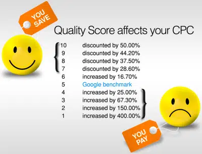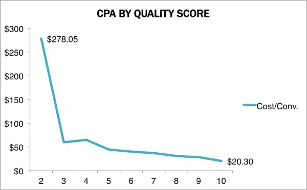 Non seulement une amélioration du quality score réduit le coût par clic, mais il vous permet également de réduire votre coût par acquisition (CPA), ce qui est mille fois plus important.