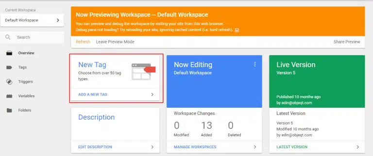 Maintenant que vous avez inséré le script GTM sur votre site, installer un outil de tracking tel que Google Analytics peut s’effectuer très facilement.