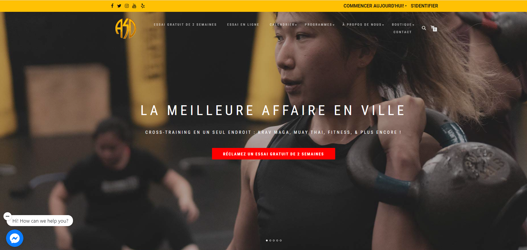 Il s’agit du site vitrine de Academy of Self Defense, une académie américaine délivrant des cours de kick boxing pour apprendre à se défendre. Le site est clair et met en avant de grandes photos des entraînements, accompagnées de grands textes et titres. Une mosaïque de photos des entraînements en ligne illustre la capacité d’adaptation de l’académie et des développeurs du site.