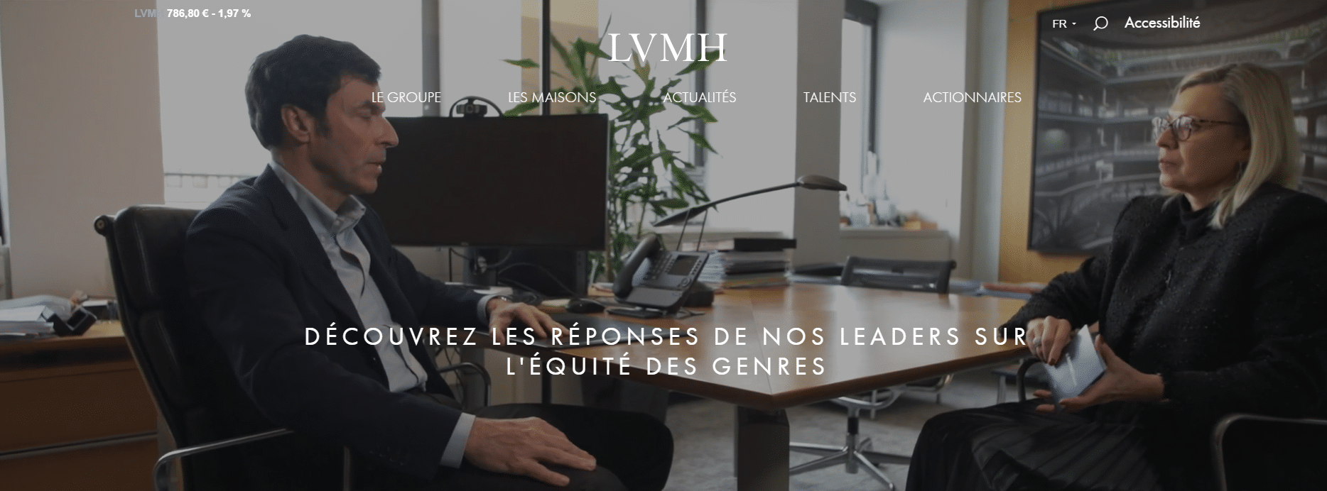 LVMH est un des acteurs les plus connu dans le monde du luxe. Ils utilisent un site WordPress, conçu à leur image : sobre, sophistiqué, et épuré. Le site du groupe LVMH a pour objectif de présenter les enjeux sociétaux et environnementaux de l’entreprise. Il permet également de présenter toutes les marques du groupe et leurs secteurs d’activité.