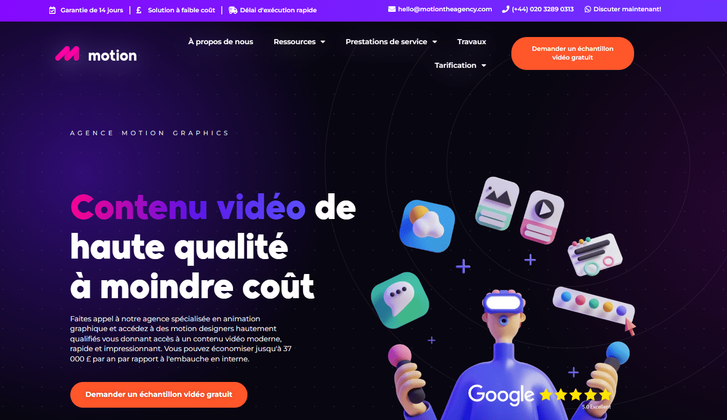 L’univers du motion design implique de montrer ce dont on est capable sur son propre site internet. En gros, le site web d’une agence de motion design ou de graphisme, doit être en mesure de montrer de suite le savoir-faire et le style de l’agence. Et l’agence Motion a clairement réussi son coup avec WordPress ! Des visuels 3D en mouvement, des animations, des gradients de couleurs, ils cochent toutes les cases des tendances designs en matière de site web.
