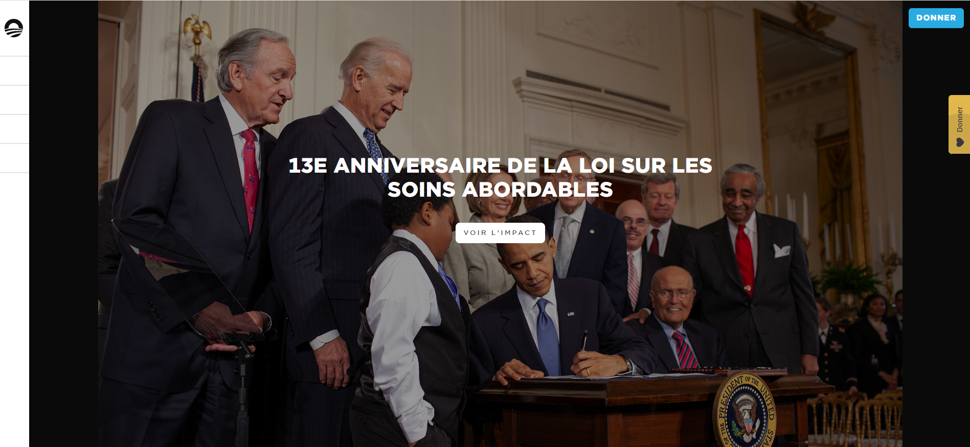 Le site d’Obama Foundation a une construction originale. En scrollant sur la page d’accueil, on observe une suite de bandeau un peu à la façon d’un blog personnel. Chaque bandeau est illustré par une photo de fond et un titre bien visible. Le menu à la verticale apporte une certaine originalité et reste très pratique pour la recherche sur le site.